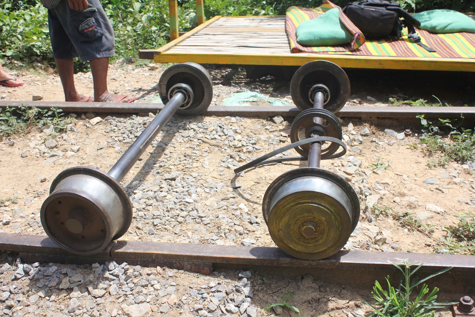 On the first day we took a tuktuk tour of the nearbye sights with a lovely Irish girl from Gallway (also called Emma) who we’d met in our hostel. The tour took us first to the Bamboo Train. This is a train network set up after the Khmer Rouge regime was overturned in 1979 (more about the Khmer Rouge in future posts), and there was no money and no infrastructure. 600 miles or so of railway was built to help the people in the region travel more freely and transport goods where needed. Only a few sections are still in use, and many are so heavily mined still that they are inaccessible, but this little stretch is used to give tourists a ride. The railway consists of two very rickety tracks, and the ‘trains’ are basically a bamboo raft that sits on top of two sets of metal wheels which are turned by a generator (initially people would ‘punt’ the trains along with sticks before engines and fuel became available).
